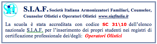 Vi è, inoltre, la possibilità di frequentare quei moduli specifici che ti consentono di portare a termine la formazione anche come ELE-Counselor Olistico – aggiungendo un altro anno di formazione, sempre con la possibilità poi di iscriverti all'associazione per ricevere l'attestato di competenza professionale S.I.A.F. come Counselor Olistico (percorso triennale);